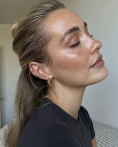 Цвет на лице появляется деликатно: в виде мягкого румянца и едва заметного тепла. Кремовые или жидкие румяна и бронзеры словно растворяются в коже, создавая ощущение свежести, будто вы только что вернулись с прогулки. Оттенки лучше выбирать при дневном свете — так они выглядят максимально естественно и не выбиваются из общего образа.
